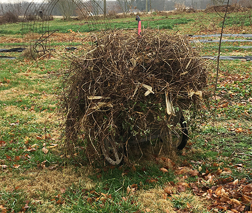 The tangle of vines and runners never knew what hit them that day. The blade of my pruning saw would catch the sunlight as it sliced through the old and new vines. Yank, pull, slice… Yank, pull, slice… Yank, pull, slice and then bundle the vines into a big knot in the garden cart. The ground was soft from the prior rain and the roots of the honeysuckle vines would often pull loose from the soil as I pulled with all my strength.