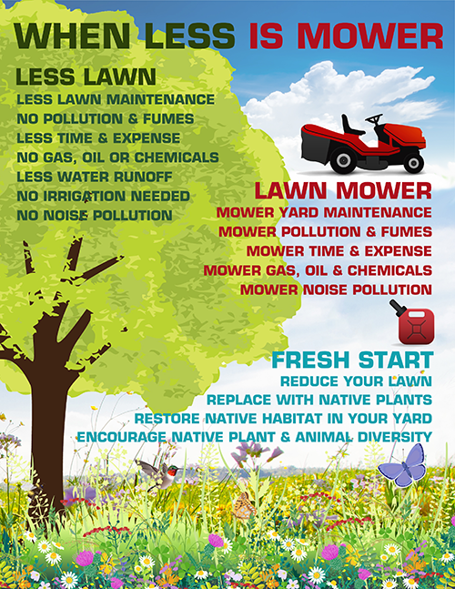 Reducing lawn space allows a mix of native species to grow, which supports more insects, birds, and soil organisms.